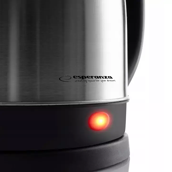 Компактний електричний чайник Esperanza-EKK004I місткістю 1,8 літра та потужністю 2200 Вт обладнаний автоматичним вимкненням під час горіння води. Корпус виготовлений із високопропорційної неіржавкої сталі, яка не зношується навіть після тривалої експлуатації електрочайника та має світлову індикацію під час кип'ятіння. Чайник обертається на підставці на 360 градусів.