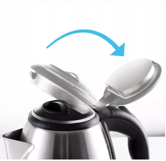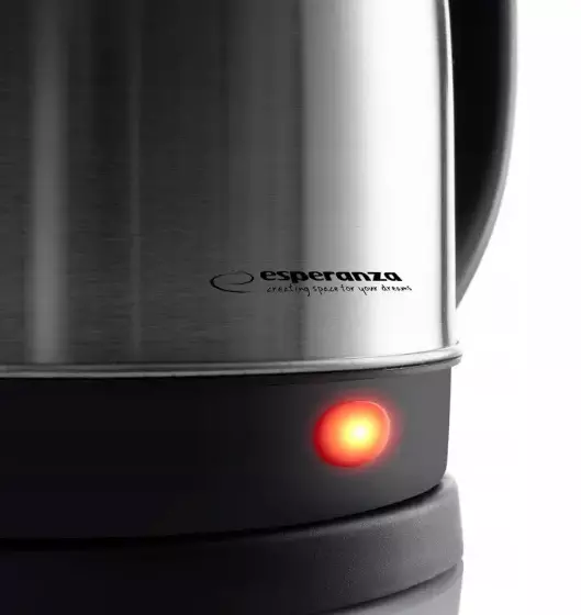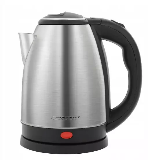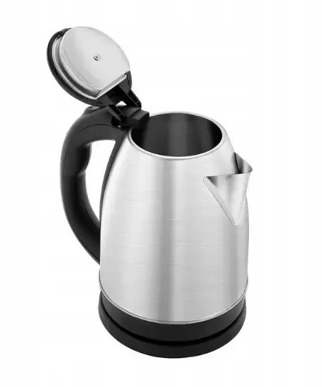 Сучасний і елегантний бездротовий чайник, виготовлений з нержавіючої сталі, з сталевими покриттями.