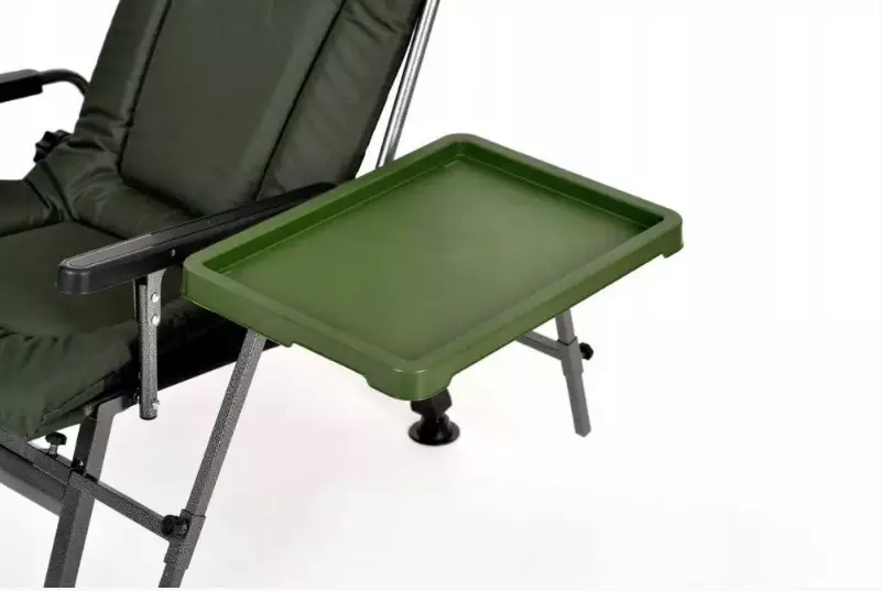 Крісло коропове Elektrostatyk F5R ST/P NN з регульованою спинкою,столиком та тримачем вудки(120 кг). Крісло F5R ST/P NN - це крісло з зручними підлокітниками і функцією регулювання нахилу спинки і висоти ніжок. Модель оснащена системою, яка дозволяє прикріплювати підставку для ніг. Сидіння і спинка крісла зроблені з водонепроникного матеріалу з наповнювачем виконує функцію утеплювача. Зручно і просто складається для транспортування і зберігання. Крісло F5R ST/P NN є одним з найпопулярніших і найвідоміших серед рибалок. Відмінно підходить для подарунка! Дана модель додатково укомплектована підставкою для вудилища і зручним боковим столиком. Обидва елементи можуть бути встановлені з будь-якої сторони крісла, так само можливе використання крісла без додаткових аксесуарів. Комфорт і зручність Важливою перевагою цього крісла є можливість розширення за допомогою підставки для ніг (продається окремо). У такому варіанті ми отримаємо зручне ліжко! Регульовані ніжки дозволяють використовувати крісло на нерівній поверхні, а регульована спинка забезпечує зручне положення сидячи. Крісло обладнане зручними плоскими підлокітниками. Додатково оснащений держателем вудки в комплект також входить стіл для різних типів аксесуарів.