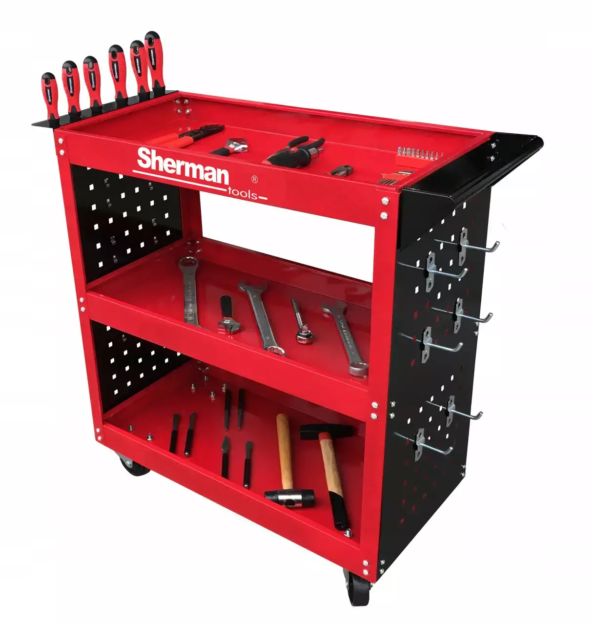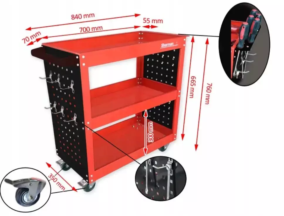 Сталевий візок з трьома глибокими полицями для зберігання і